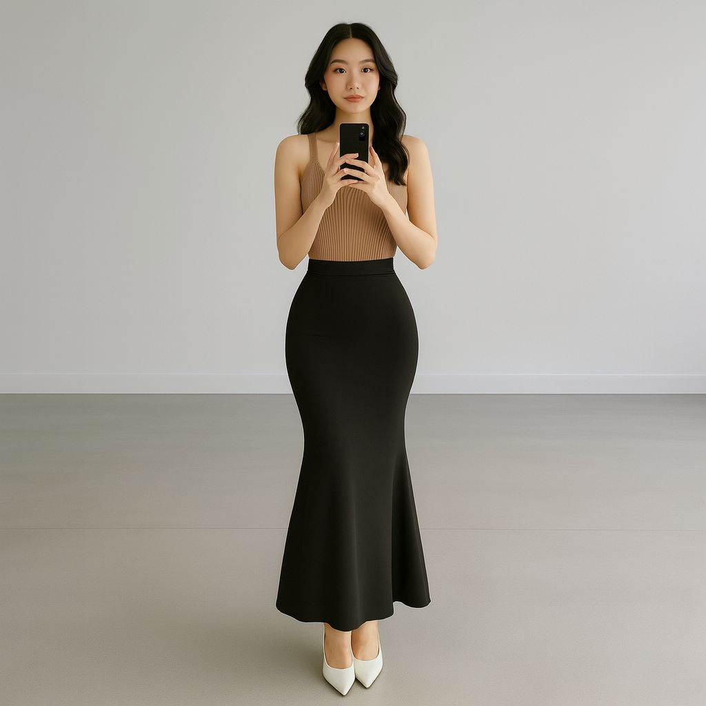 Lunar Mermaid Skirt - Rok Duyung Panjang Midi Maxi Highwaist - Rok Flare Korean Style Basic Polos Wanita