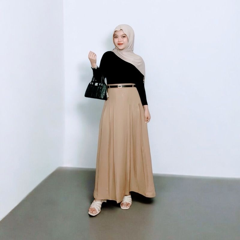 Rok Wanita Midi Korean Style - Joy Skirt Flare Terbaru - Rok Wanita Premium