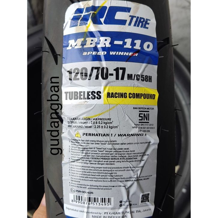 BAN IRC MBR110 120/70 -17 Speed Winner Soft Compound Ban Motor Tubeless Original Resmi Murah