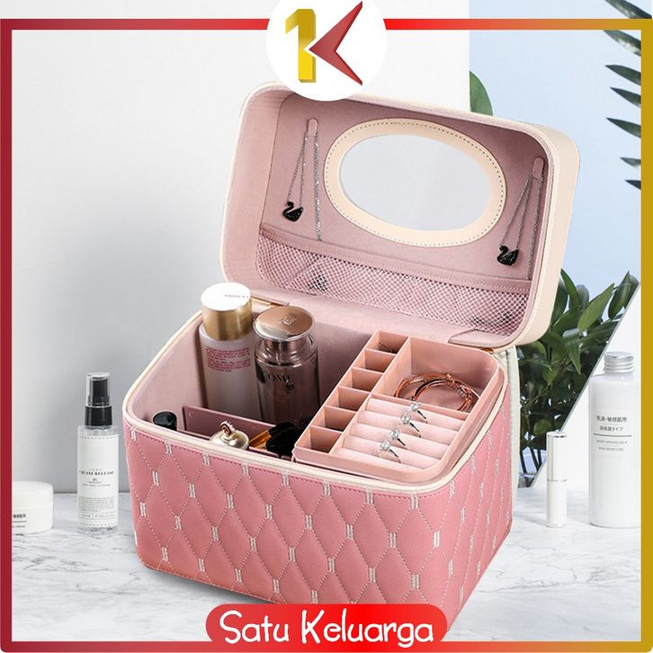 SK-K158 Kotak Make Up Box Make Up Motif Elegan dengan Sekat / Tempat Kosmetik Kotak Penyimpanan Serbaguna Portable