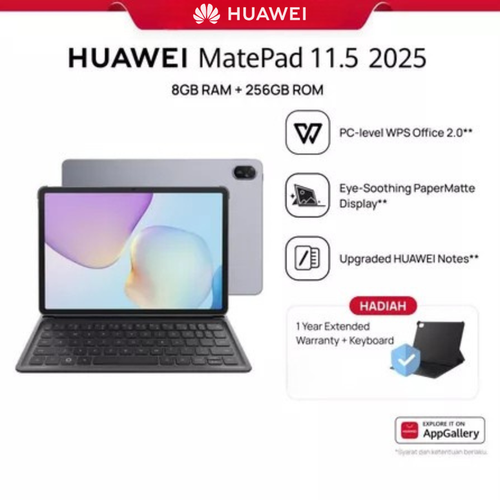HUAWEI MATEPAD 11.5 INCH 2025 TABLET WPS OFFICE 2.0 TINGKAT PC LAYAR PAPERMATTE 10100 MAH 40W SUPERCHARGE TERBARU