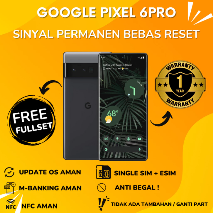 Google Pixel 6 Pro 12/128GB 12/256GB All SIM Permanen Bebas Reset Second Original Mulus Like New Free Bonus