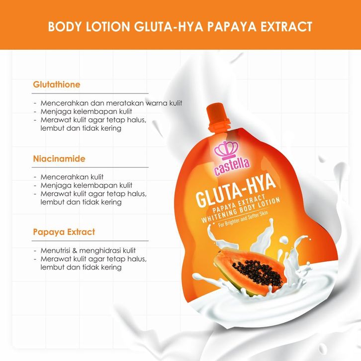 BPOM Castella Gluta-Hya Hand Body Lotion 150ml Papaya Extract Pelembab Pelembut Pencerah Kulit Badan Cream