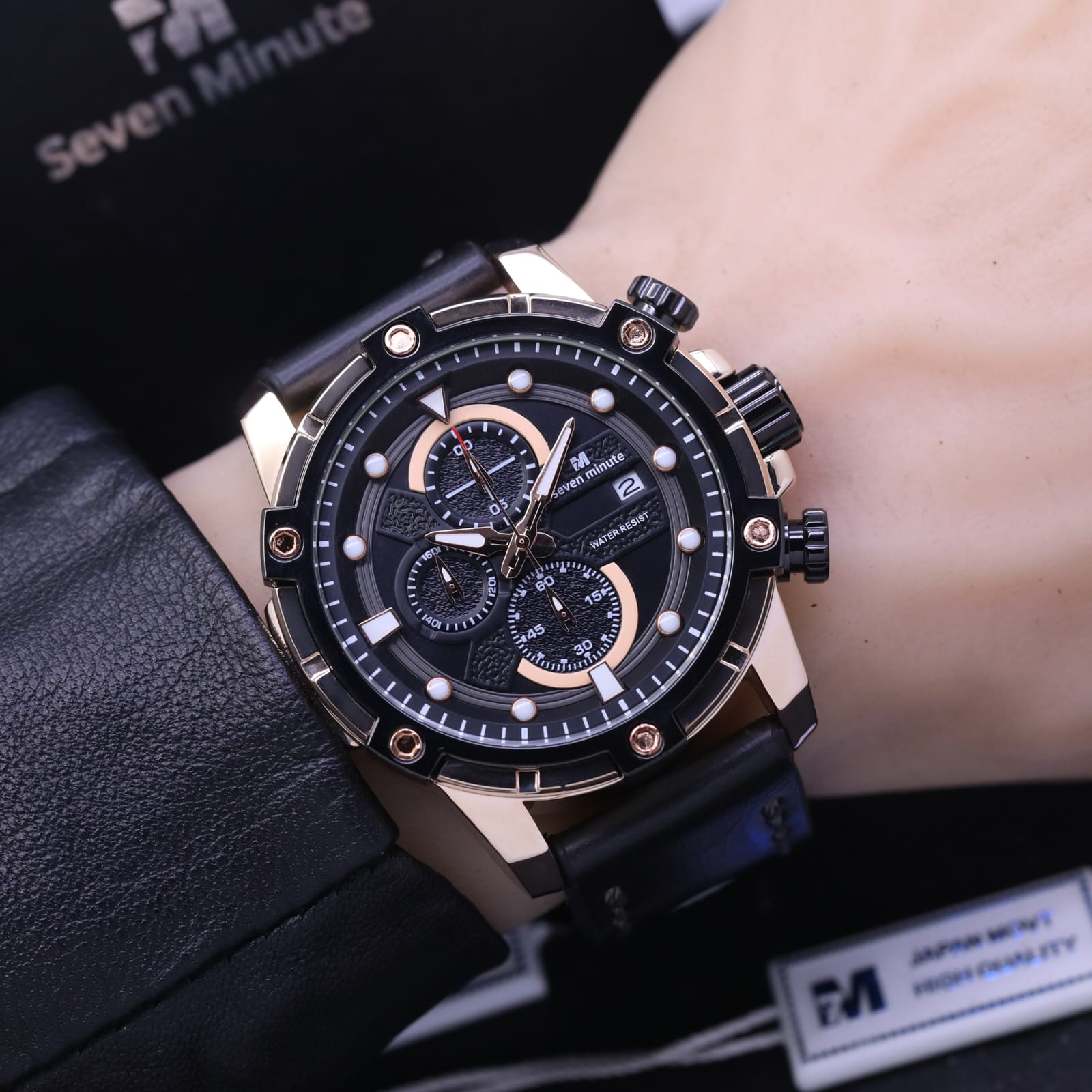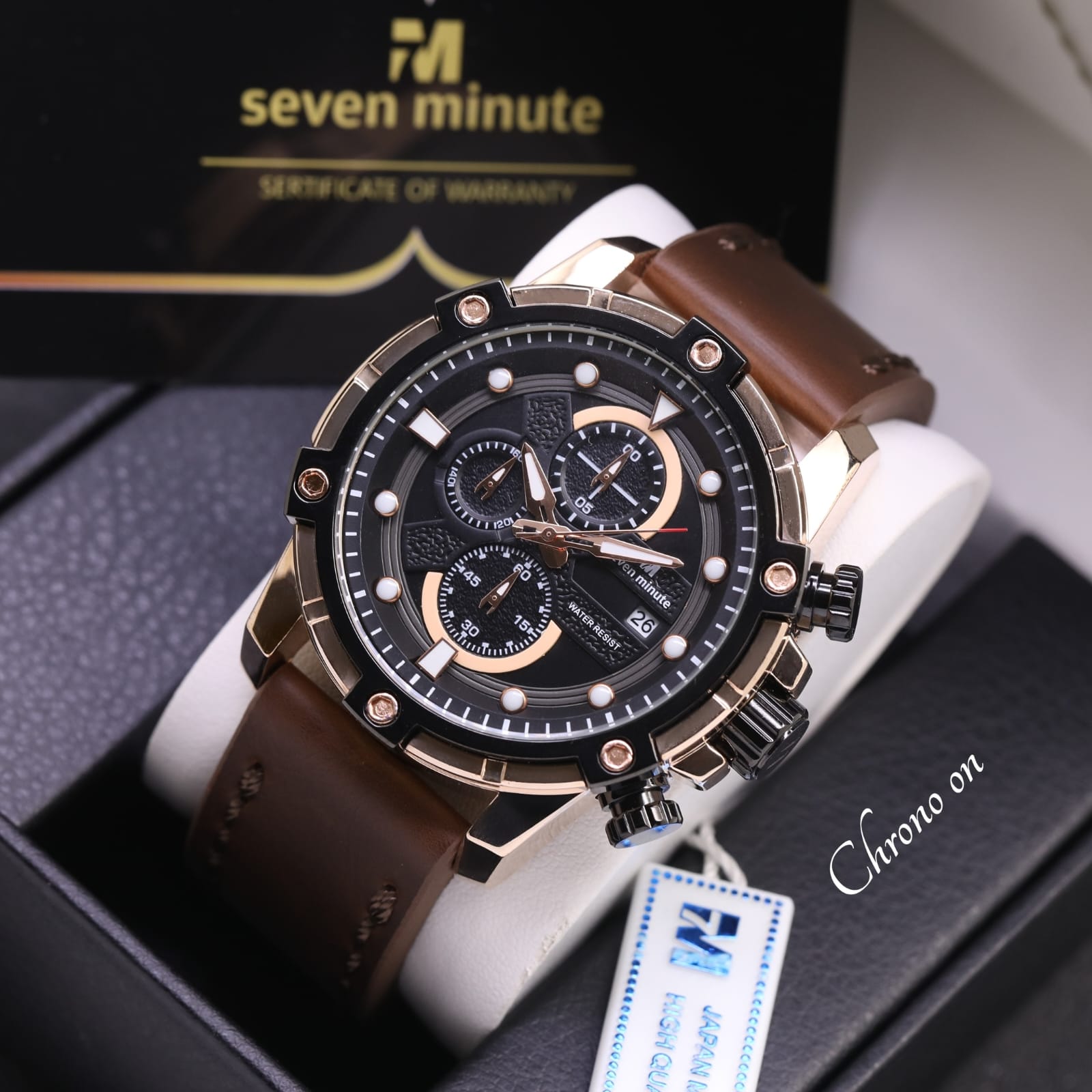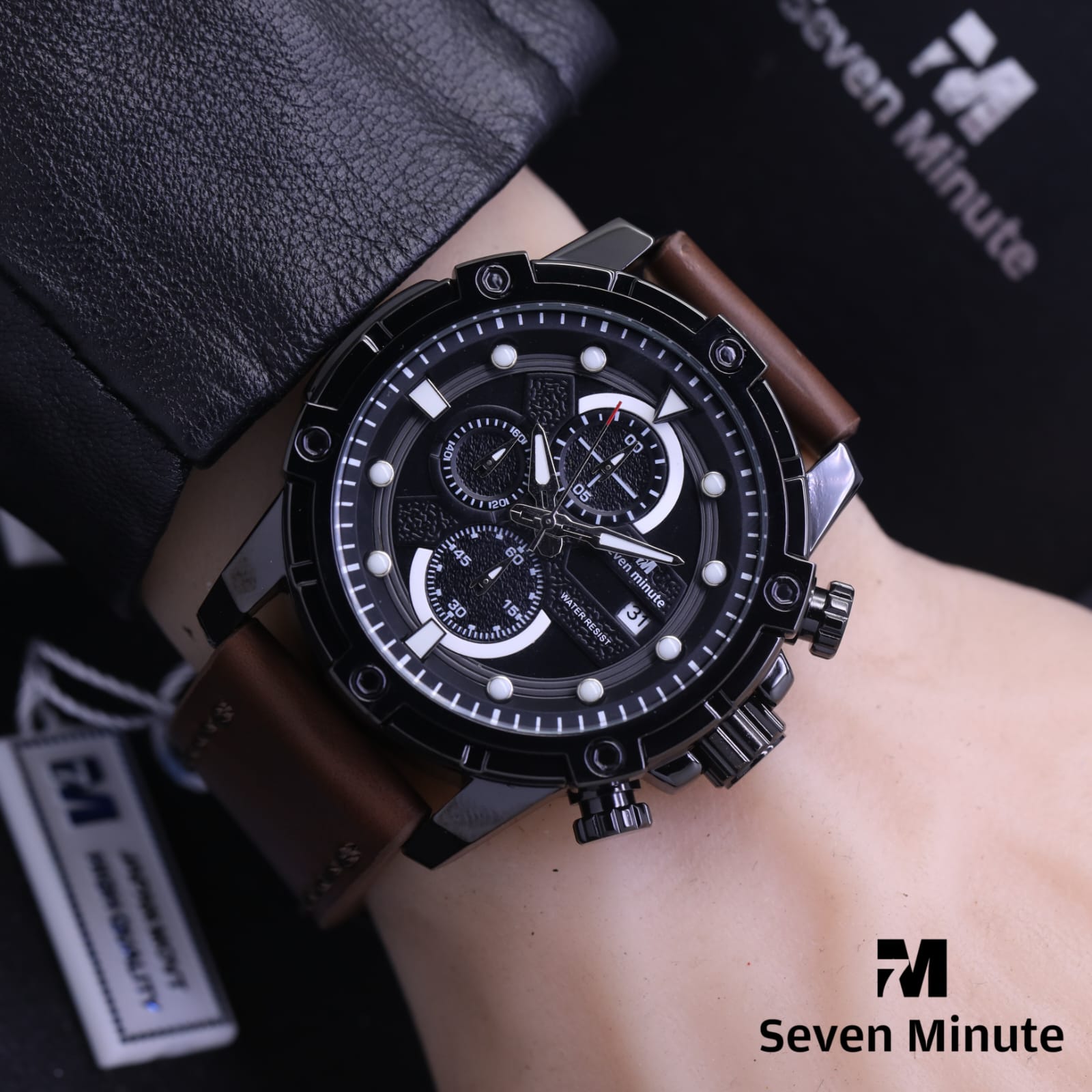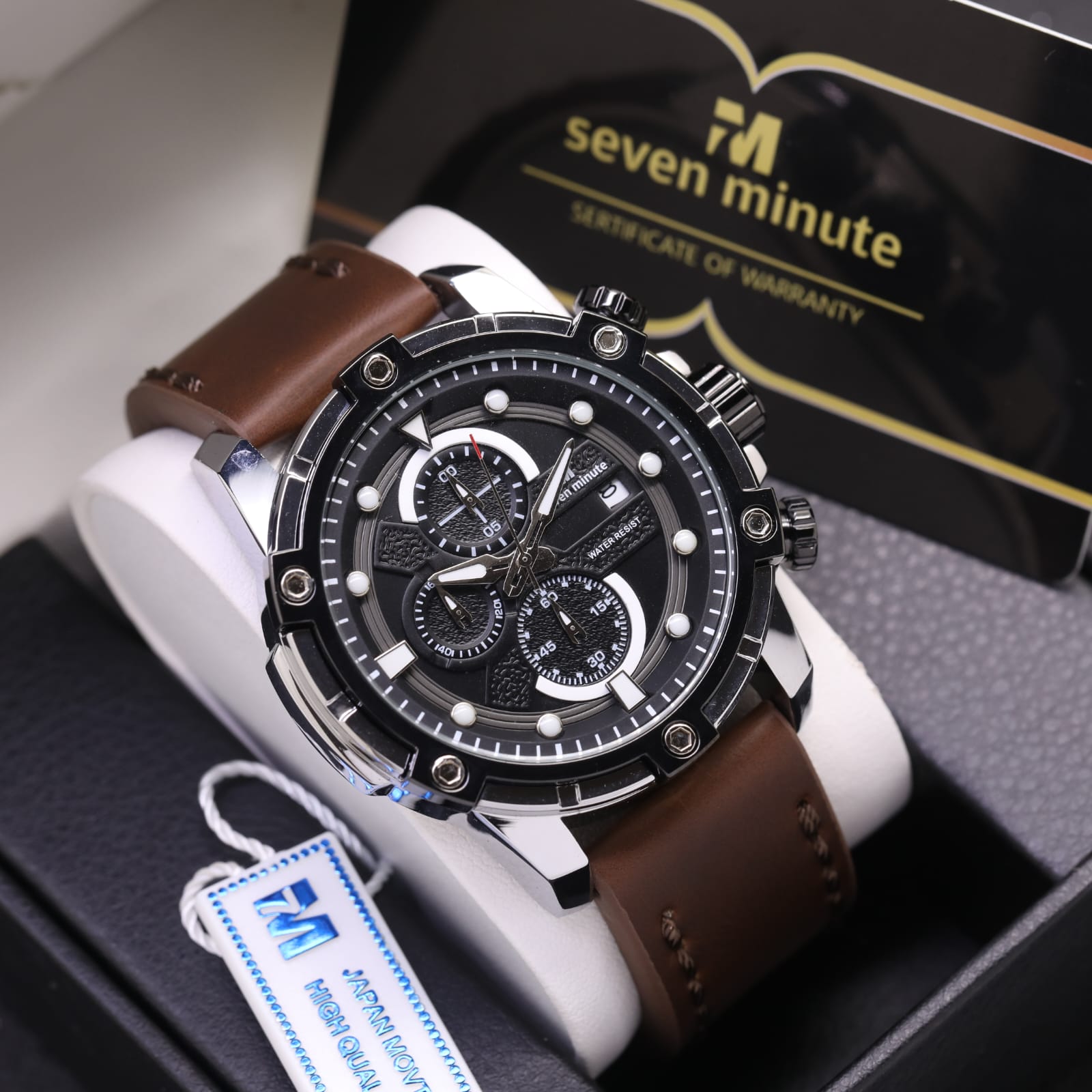 FREE ONGKIR - Jam Tangan Pria Seven Minute SM6205Tl Original Chronograph Tanggal Aktif Tali Kulit Free Box Ori