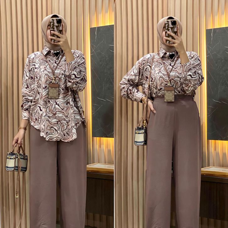 SETELAN WANITA LUXURY KANYA SET / SATU SET BAJU CELANA / SET KEMEJA RAYON MOTIF CELANA KULOT HIGH WAIST / ONE SET