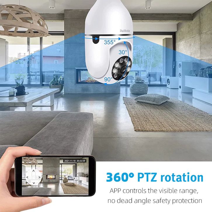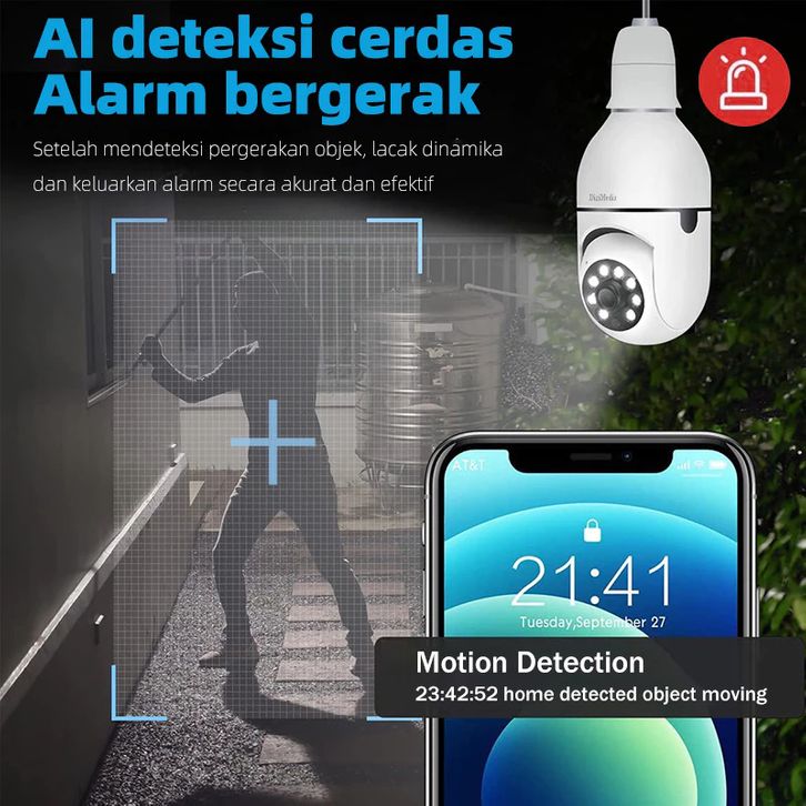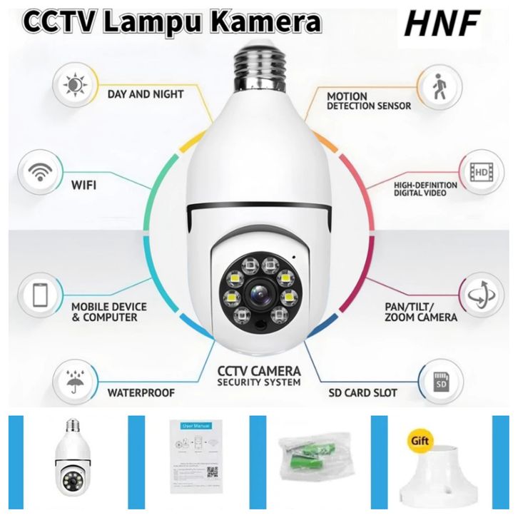 HNF CCTV Lampu 360° 4K PTZ WiFi Smart Camera Night Vision Motion Detection