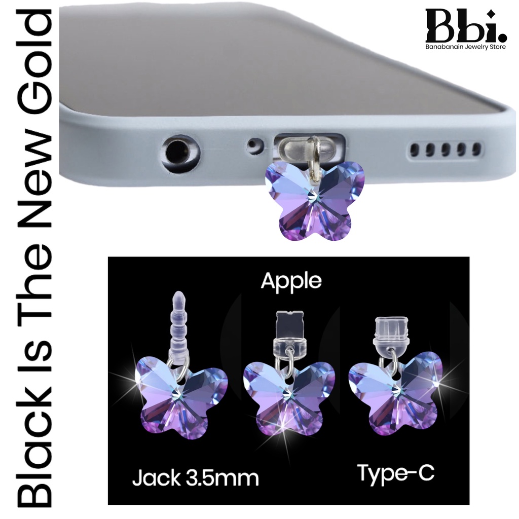 GANTUNGAN HANDPHONE KRISTAL UNGU PENUTUP LUBANG HP