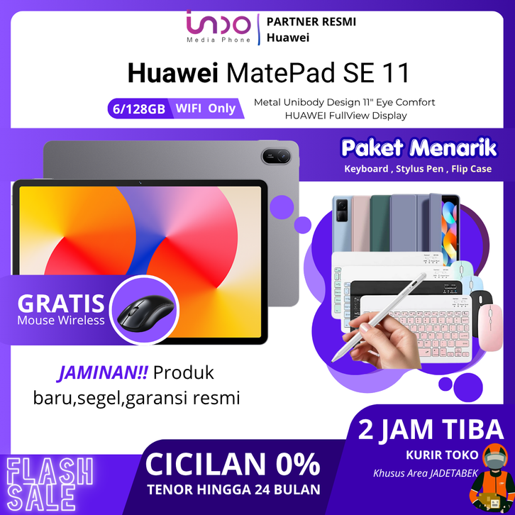 [ 2 JAM SAMPAI ] HUAWEI MatePad SE 11" Tablet [6+128GB] 2K Eye Comfort Display 7700mAh Metal Unibody - matepad se 11