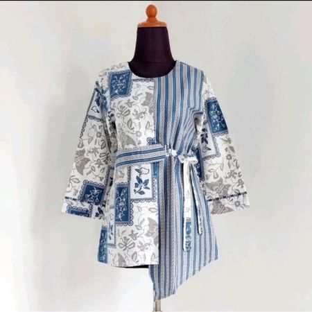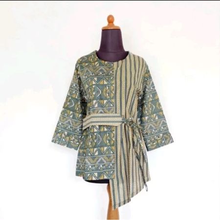 Atasan Blouse Batik wanita Panjang Terbaru Batik Kerja wanita Modern terbaru 2025 ada Pita