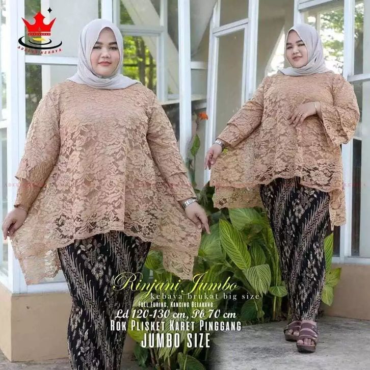 SETELAN KEBAYA RINJANI JUMBO BIG SIZE M-5XL KEBAYA BESAR LD 130 KEBAYA TUNIK JUMBO AURORA BRUKAT MODERN WISUDA CANTIK