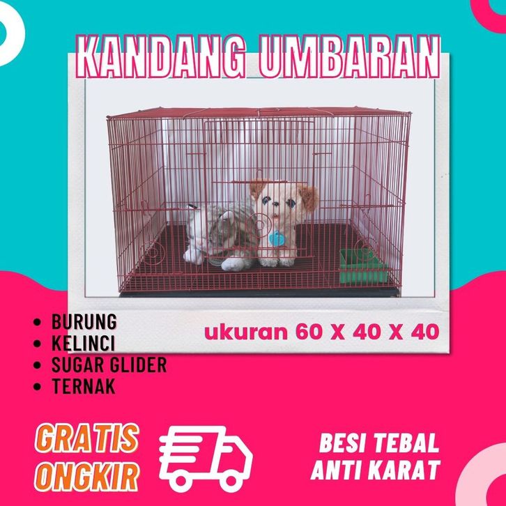 Kandang Besi Lipat 60x40x40 Untuk Burung, Kucing, Anjing, Sugar Glider, Hamster, Reptile Kandang Kuc