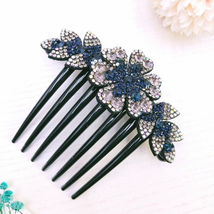 Sirkam Rambut - Cepol Manik - Hiasan Sanggul Manik - Sirkam Mawar - Biru Mawar