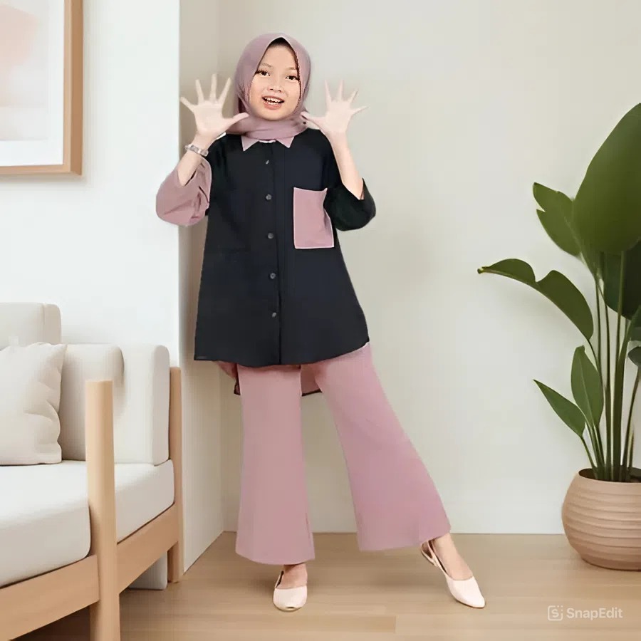 Baju setelan anak perempuan tanggung 8 tahun 9 tahun 10 tahun 11 tahun 12 tahun one set crinkle anak cewek free hijab