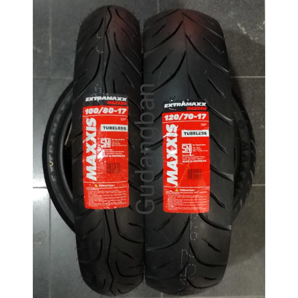 PAKET BAN MAXXIS EXTRAMAXX UK 100 / 80 DAN 120 70 RING 17 TUBELESS UNTUK CBR NINJA BONUS P3NTIL
