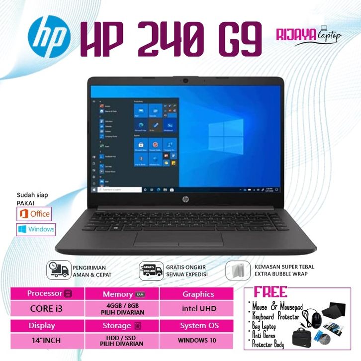 [ READY ] LAPTOP HP 240 G9 CORE i3-1215U RAM 8GB/1TB WINDOWS 10 FREE TAS LAPTOP-MOUSE