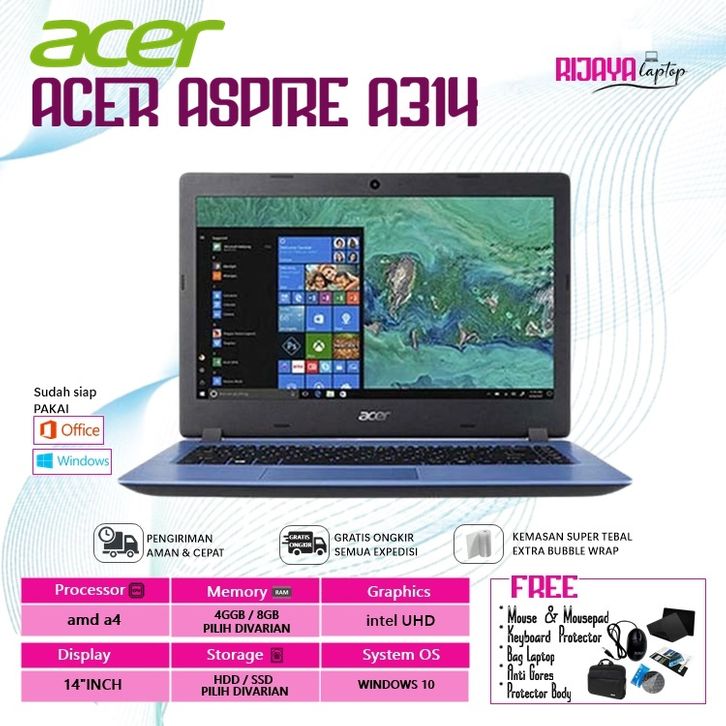 [ PROMO ] LAPTOP ACER A314 14 INCH AMD A4-9120 RAM 8GB/HDD 1TB WINDOWS 10 FREE TAS LAPTOP-MOUSE
