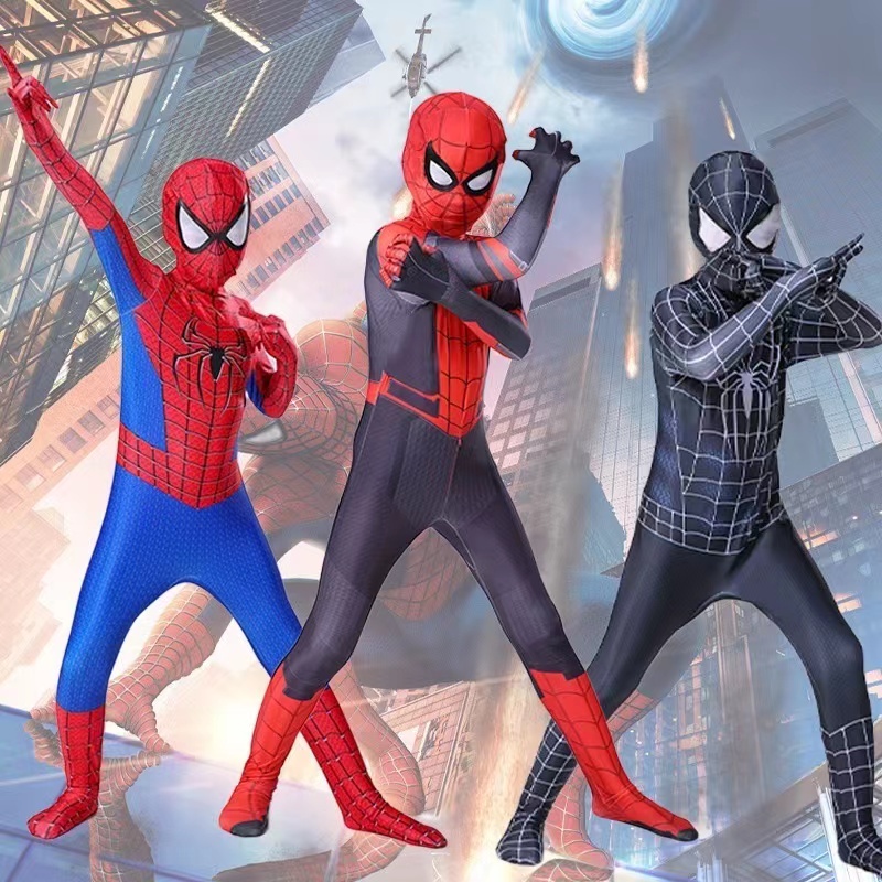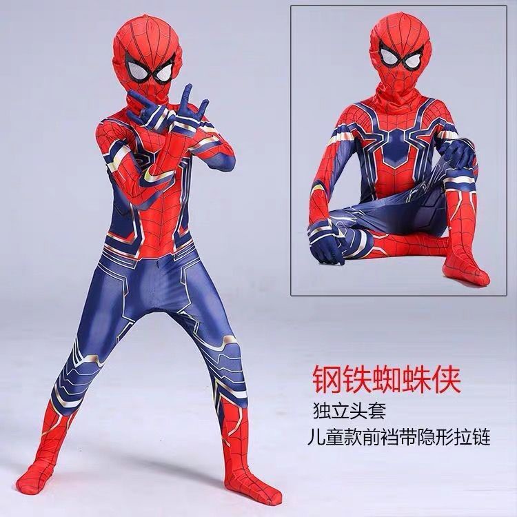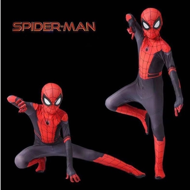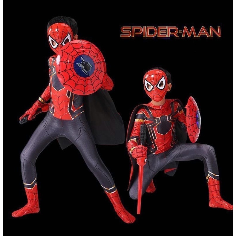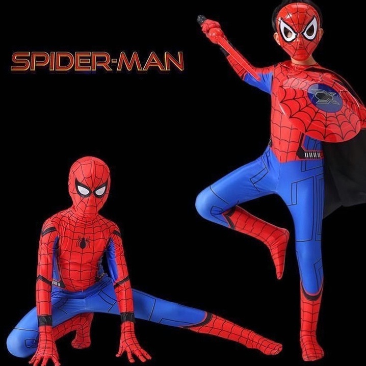 KOSTUM ANAK SPIDERMAN BAJU COSPLAY SUPERHERO JUMPSUIT + TOPENG