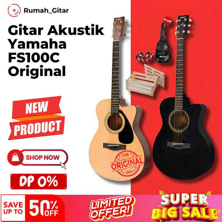 Gitar Akustik Yamaha FS100C + Softcase & 2 Pick Original