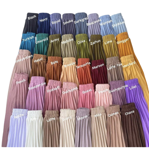DUSTY PINK, UNGU TERONG, PUTIH BERSIH, KUBUS, DUSTY BLUE, PUTIH BW, NAVY, LILAC MUDA, HIJAU TOSCA, PURPLE MUDA, HIJAU TNI, WARDAH, UNGU LILAC, ARMY MUDA, LAVENDER, PINK SALEM, CREAM TUA, BATA TUA, PRAMUKA, DENIM, CARAMEL, PINK UNGU, KUNING LEMON, LILAC TUA, CREM MILO, CREAM MUDA, ABU SILVER, PINK ASH, ABU TUA, BOTOL TUA, KUNYIT, TERACATO, PEACH, MAROON, COKSU, TARO, PUPUS MUDA, HIJAU LEMON, OLIVE TUA, MINT TUA, ABU MUDA, MILO, BOTOL MUDA, MOCCA, HITAM