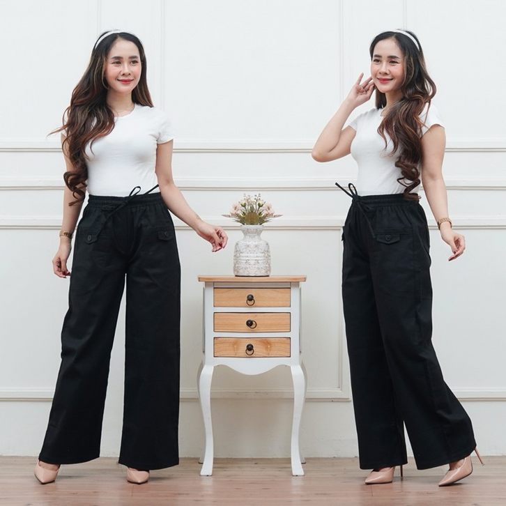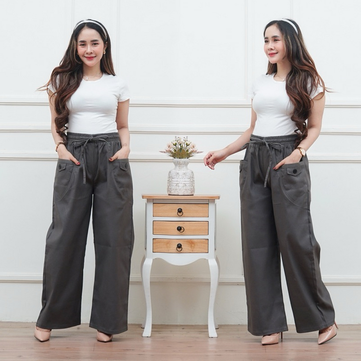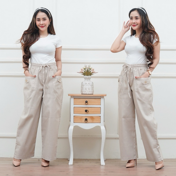 Celana Kulot Wanita Highwaist Korean Style Kekinian Kantong Depan Variasi Kancing