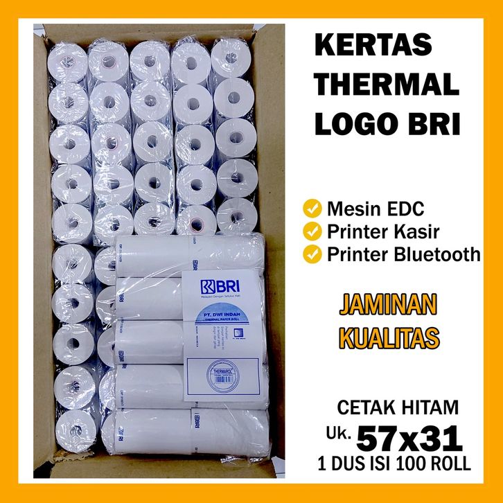 KHS || 10 Roll LOGO BRI Kertas Thermal LOGO BRI 57x31 / Kertas EDC/Bluetooth Printer/ Kasir/ Struk/ Slip 57x31 57x30