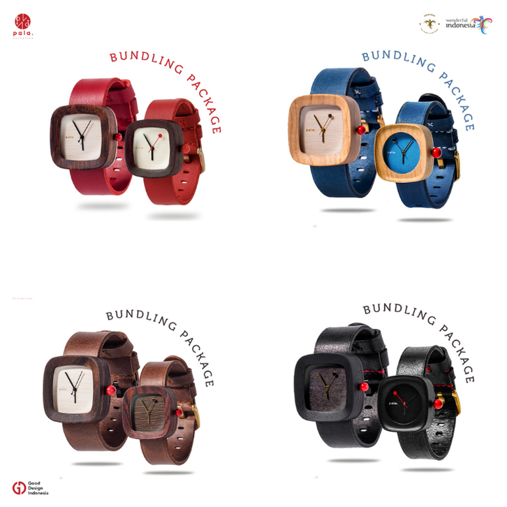 Jam Tangan Wanita Pria Unisex Pala Nusantara Bundling Couple Jam Tangan Kayu Dan Kulit Asli Original