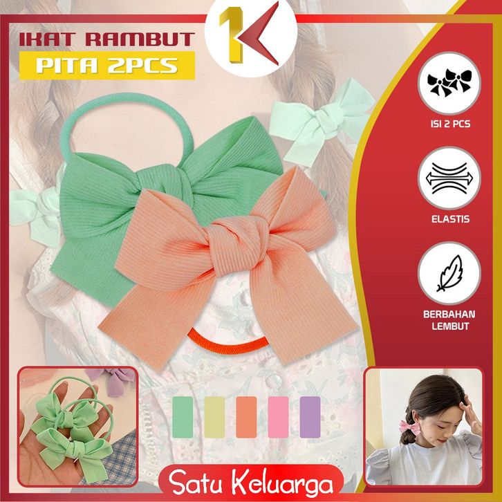 SK-C950 Ikat Rambut Pita 2Pcs Wanita Kunciran Korea / Set Karet Rambut Anak Lucu Motif Pita / Kuncir Aksesoris Rambut