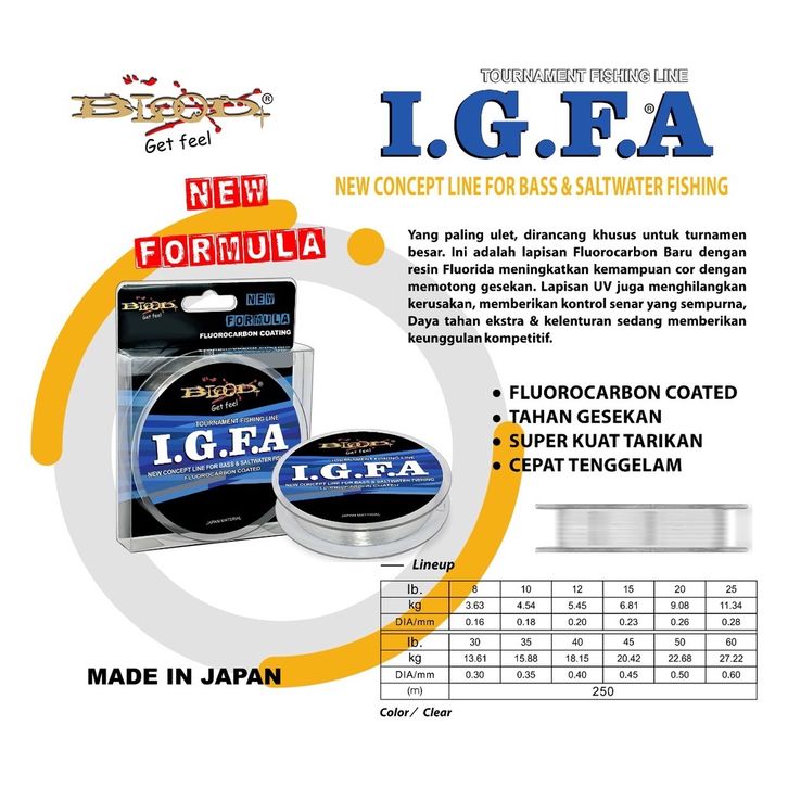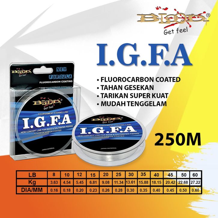 Senar Pancing Anti Keriting Blood IGFA Monofilament FC Coating 250M Super Kuat Japan Tali Pancing Nylon Wear Resistant