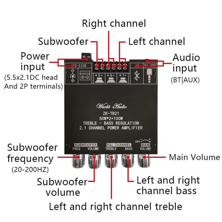 ZK-TB21 TPA3116D2 BLUETOOTH 5.0 AMPLIFIER BOARD 50WX2+100W BLUETOOTH AMPLIFIER CLASS D 2.1CH SUBWOOFER AMPLIFIER BOARD