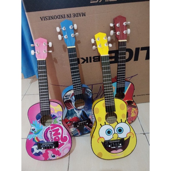 UKULELE GAMBAR SPIDERMAN/UKULELE KADO HADIAH/GITAR MINI MURAH/KENTRUNG SENAR 4 & SENAR 3