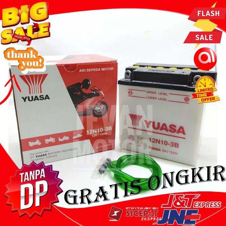 CICILAN/BARU+ [JEVAN MOTOR] YUASA BATTERY 12N10-3B / ACCU YUASA 12N10-3B / AKI 12N10-3B / AKI BASAH