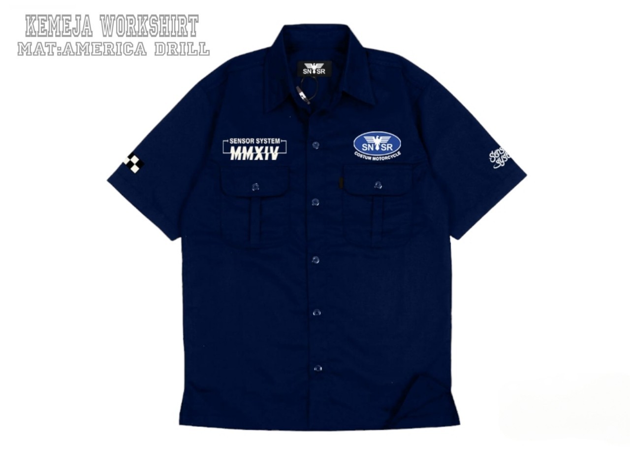 [SIAP KIRIM] Kemeja Pria Workshirt / Kemeja Casual Pria Lengan Pendek Full Bordir Original Sensor