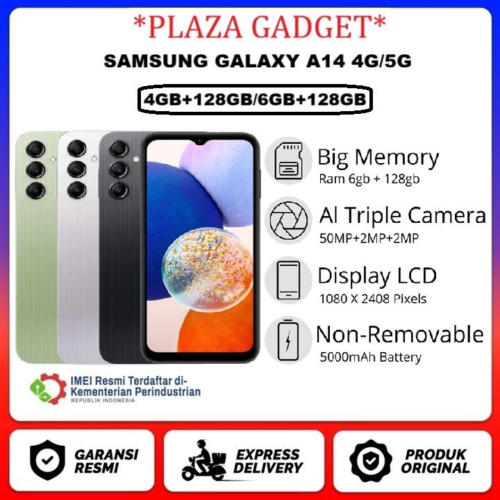 SAMSUNG A14 4G/5G 4/128GB+6/128GB Processor : Octa Core Processor Battery Capacity : 5000mAh 15W Support Fast Charge
