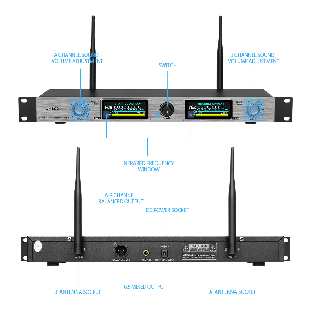 Mikrofon nirkabel satu-dua profesiona SH802/UH802 Uband FM KTV Uband bernyanyi hiburankeluarga/pelatihan ceramah