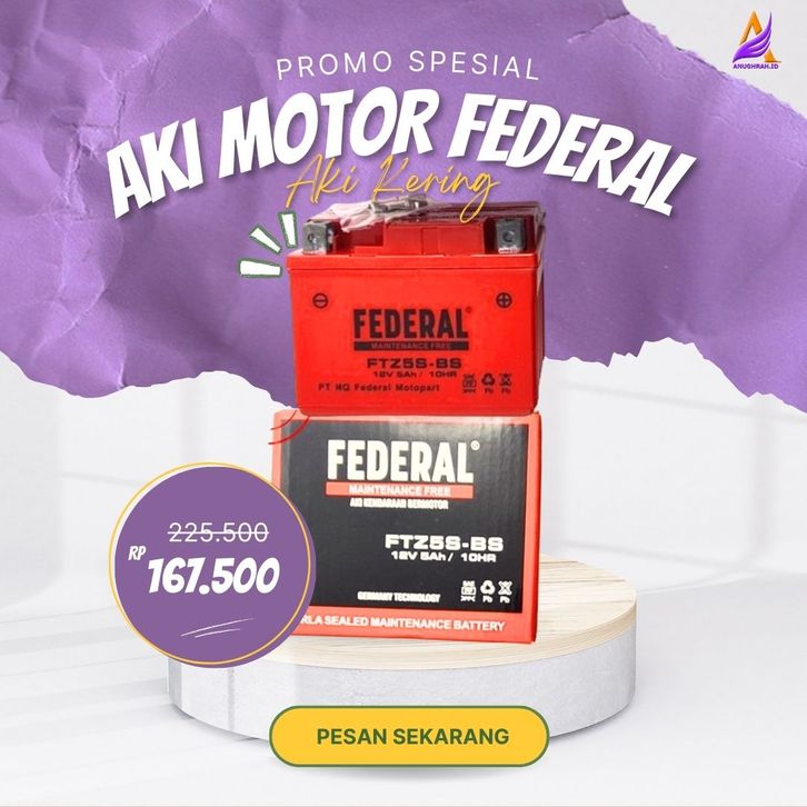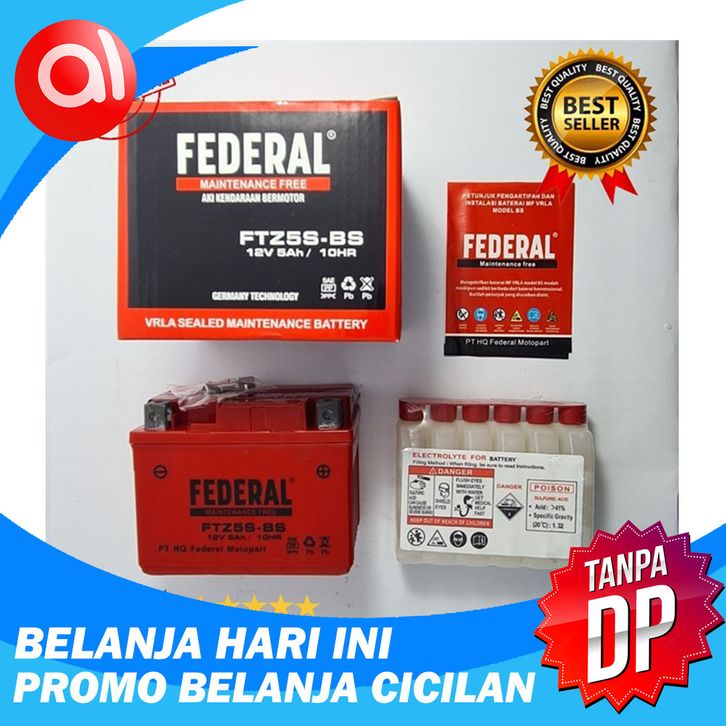 GROSIR/BARU+ AKI KERING AKI MOTOR GTZ 5S GTZ-5S 12V 5AH / 10HR FEDERAL