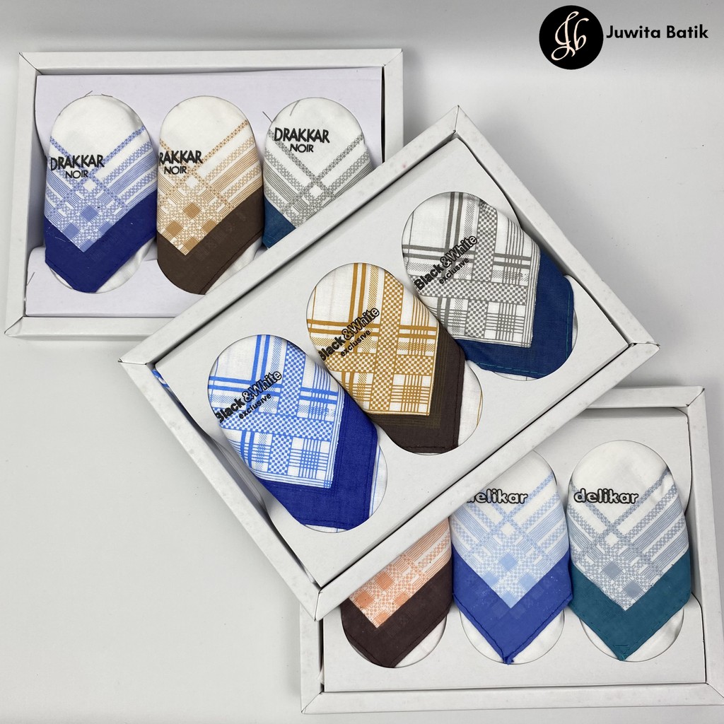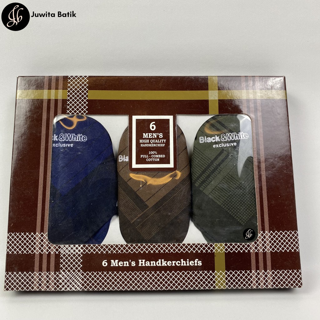 ISI 6 PCS SAPU TANGAN PRIA KATUN GELAP DAN TERANG MOTIF 6 MENS HANDKERCHIEFS