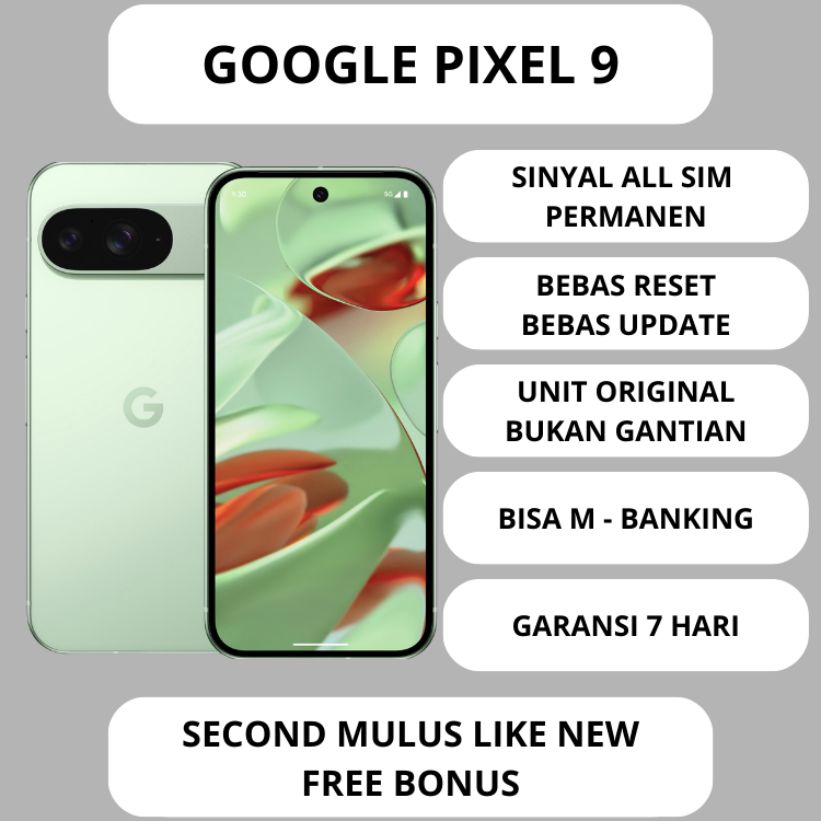 Google Pixel 9 12/128GB All SIM Permanen Bebas Reset Second Original Mulus Like New Free Bonus