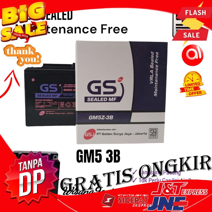 CICILAN/BARU+ AKI MOTOR MIO SMILE/SPORTY/JUPITER Z LAMA/BURHAN/SUPRA LAMA/VEGA ZR/SUPRA FIT GSJ GM5 3B AKI KERING