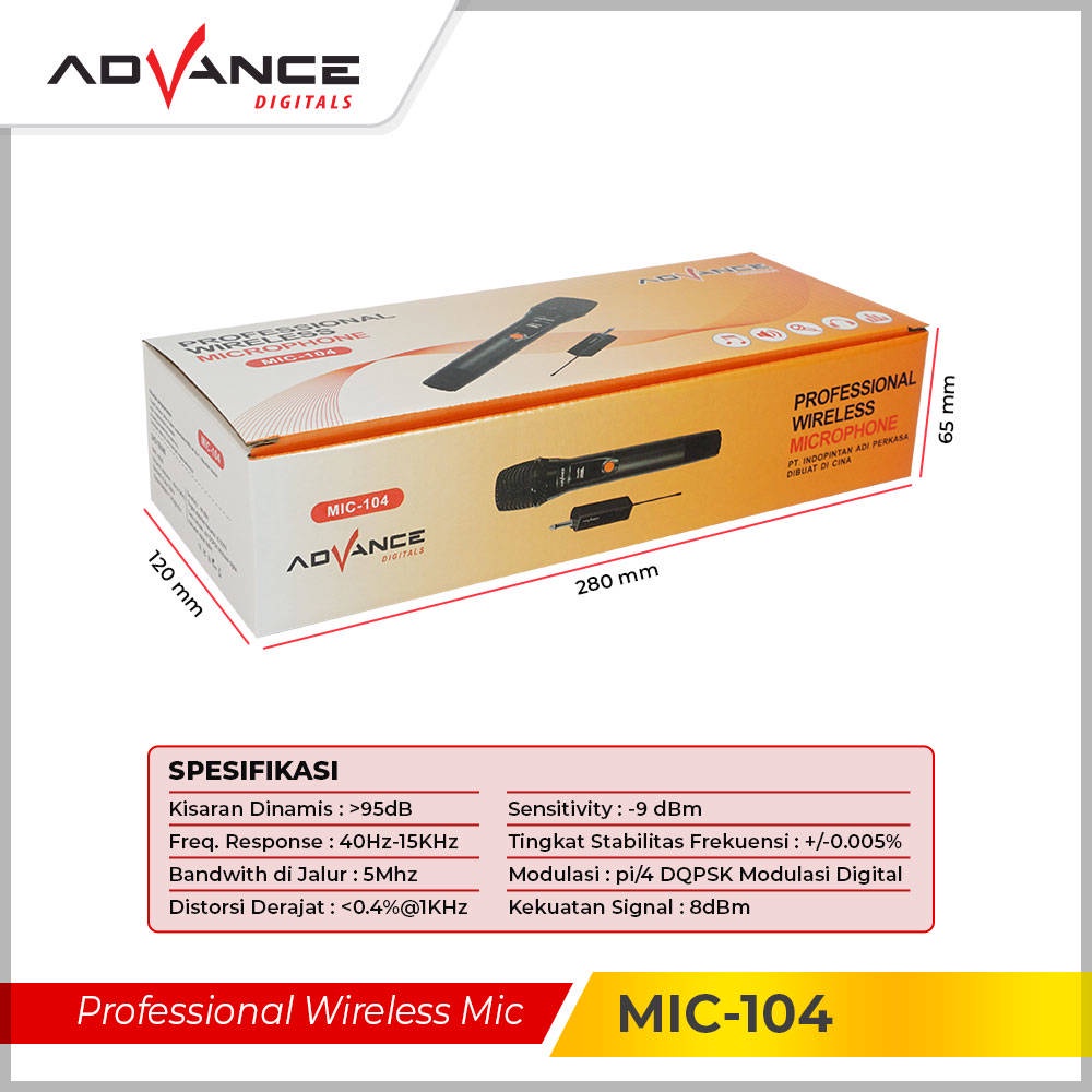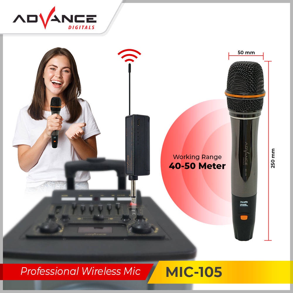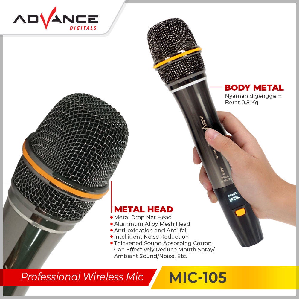 Advance Mic-103 Microphone Profesional Mic Wireless Gold Bisa di Charger / Garansi Resmi 1 tahun