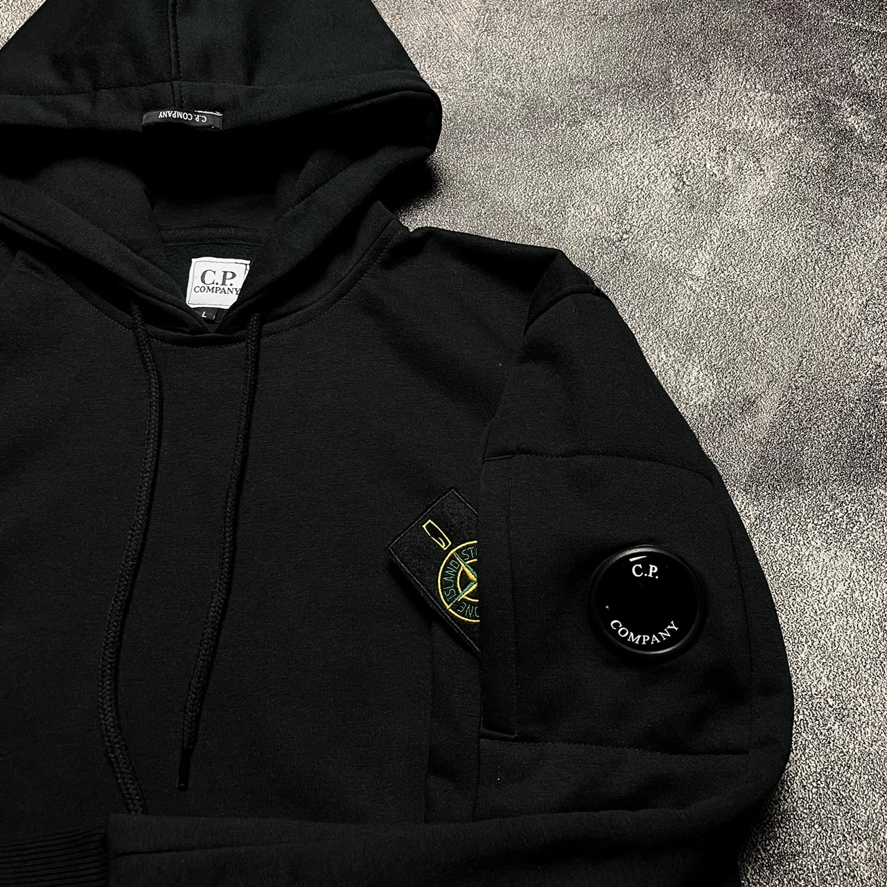 Jaket Hoodie CP Company Hitam / Jaket Sweater Cp Company Raised Lens Unisex Pria Wanita
