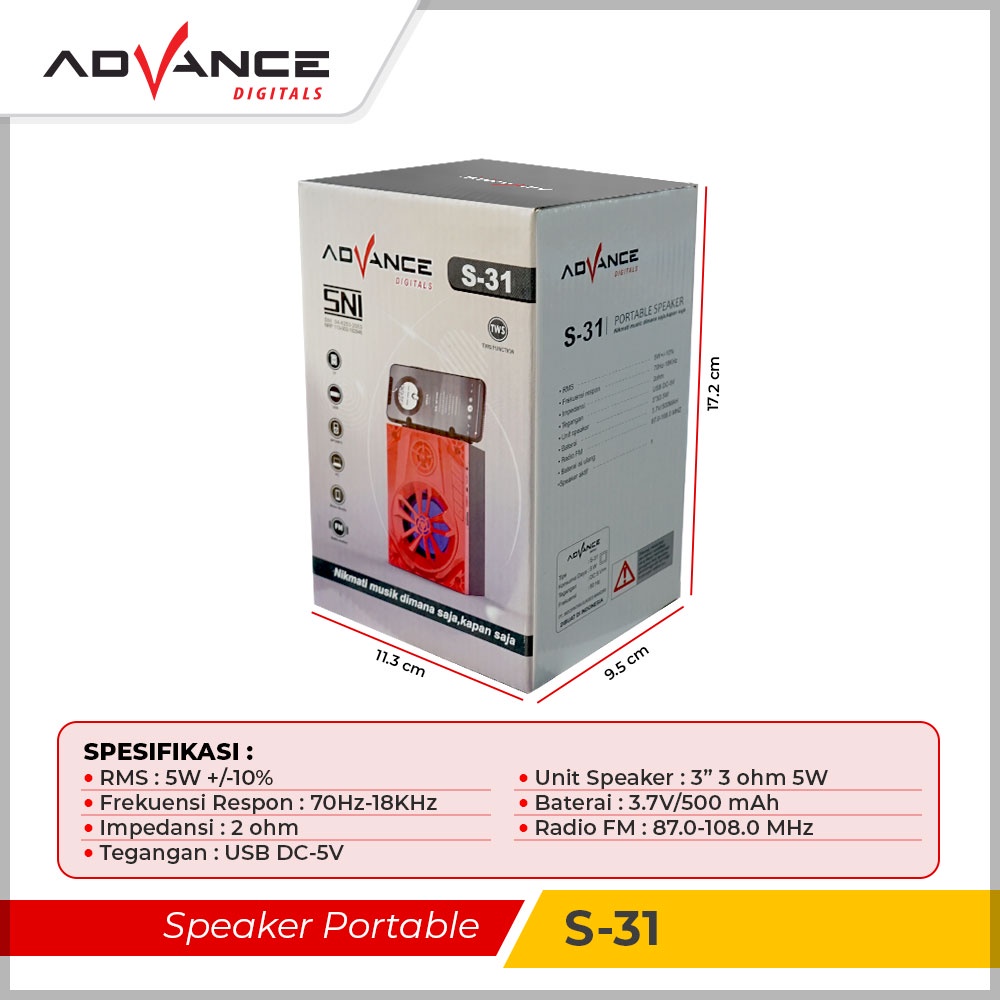READY STOCK ADVANCE SPEAKER BLUETOOTH MUSIC BOX ADVANCE S31 S 31 GARANSI RESMI 1 TAHUN