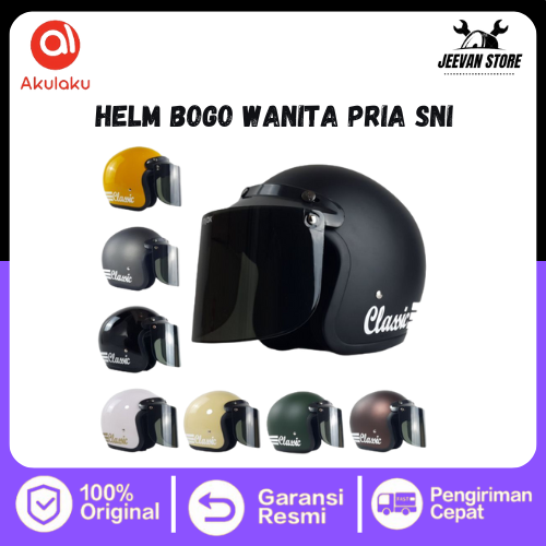 HELM BOGO WANITA PRIA SNI/HELM BOGO CLASSIC KACA DATAR ATAU CEMBUNG/GROSIR HELM