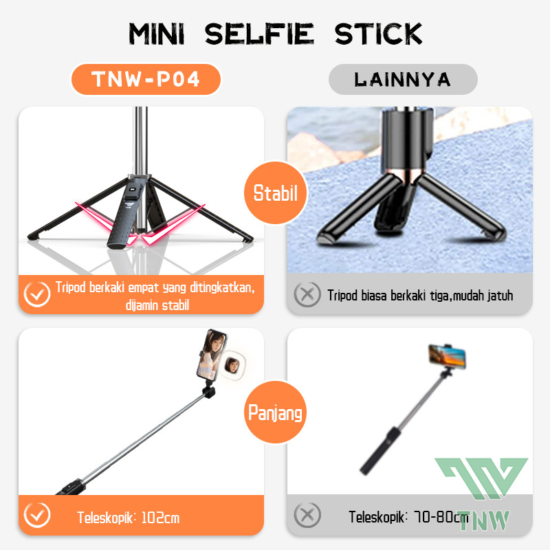 TNW P04 MINI SELFIE STICK TONGSIS BLUETOOTH TRIPOD 4-IN-1 TONGSIS PORTABLE REMOTE