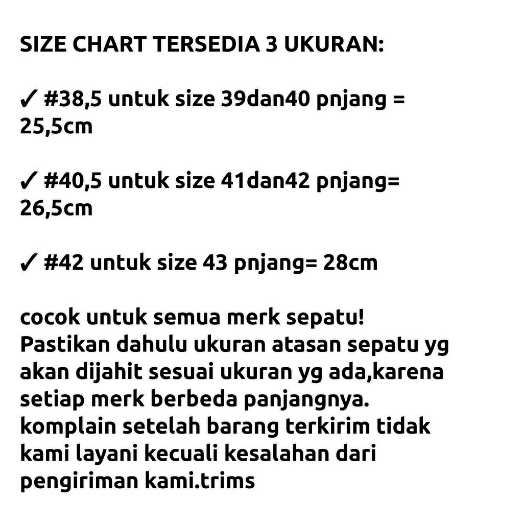 kecil(#38)= 39&40, sedang(#40)= 41&42, besar(#42)= 43