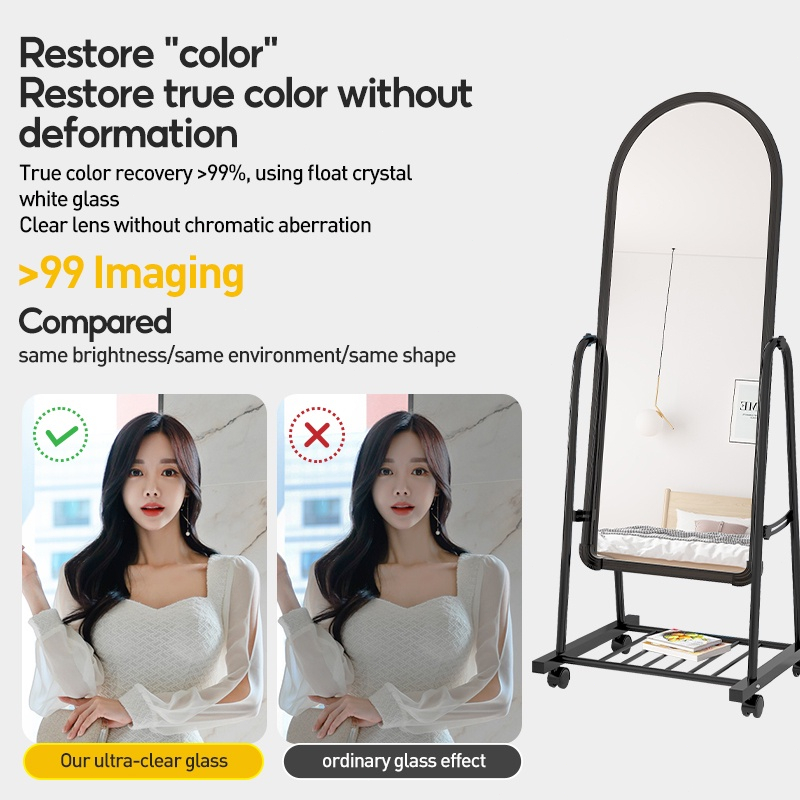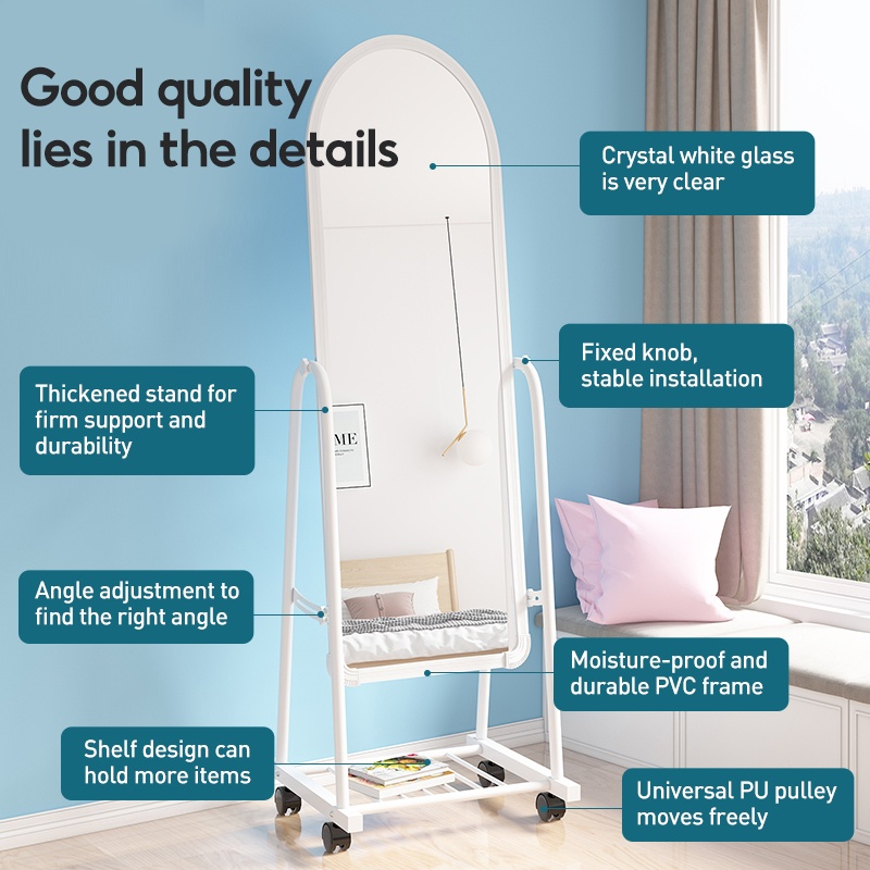 STANDING MIRROR DENGAN RODA CERMIN BERDIRI FULL BODY CERMIN AESTHETIC