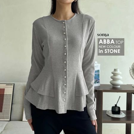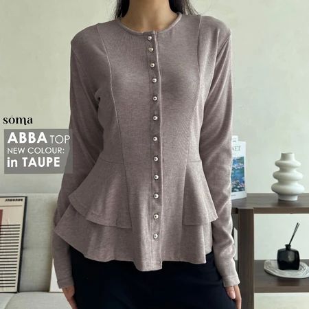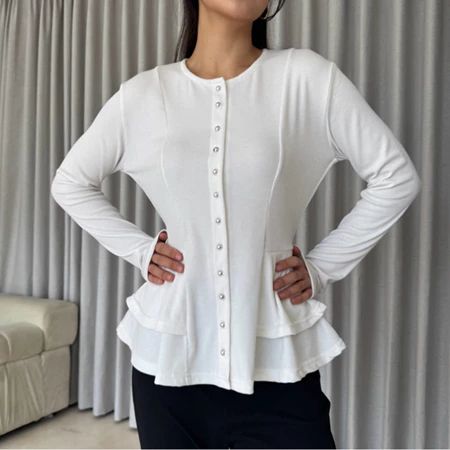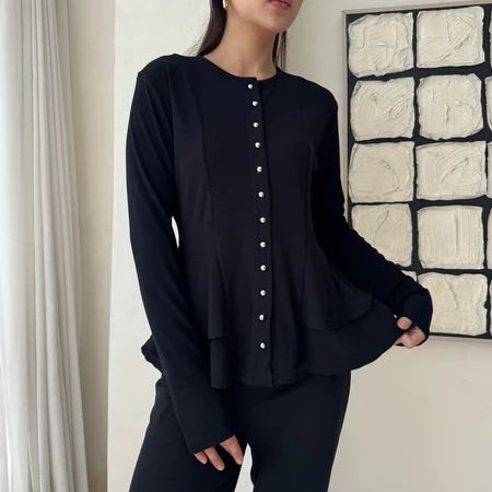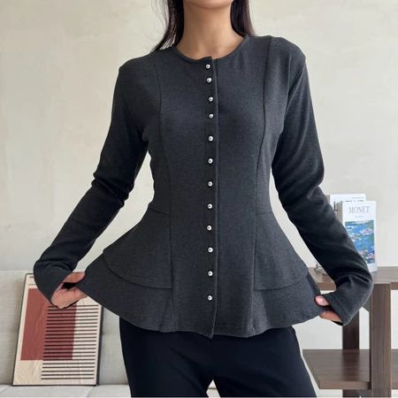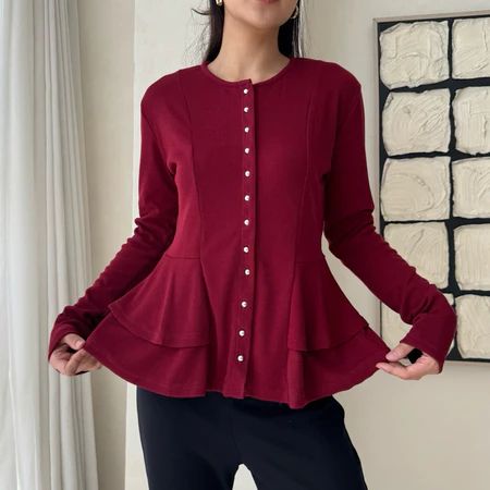 Atasan Kardigan Peplum Knit Kancing Wanita Babydoll Button Top Lengan Panjang