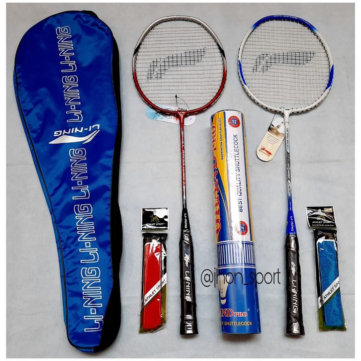 BADMINTON STORE RAKET BADMINTON LINING SEPASANG FREE GRIP 2 1 TAS KOCK ISI 12 PCS