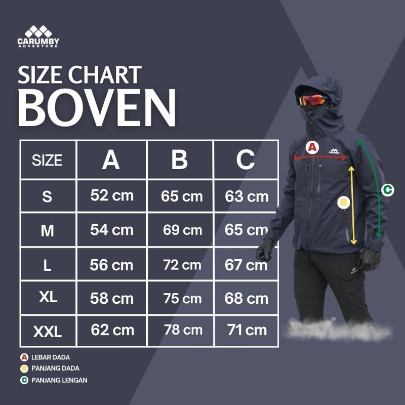 CARUMBY JAKET GUNUNG BOVEN POLOS HITAM PRIA WANITA