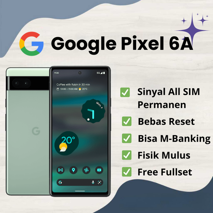 Google Pixel 6A 5G 6/128GB Second Original Mulus Like New All SIM Permanen Bebas Reset