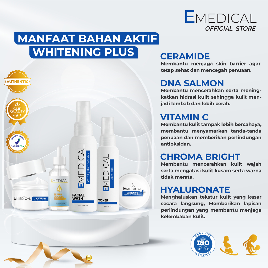 EMEDICAL Whitening Plus With Retinol Kulit Cerah & Glowing Free Pouch